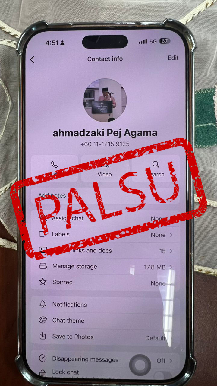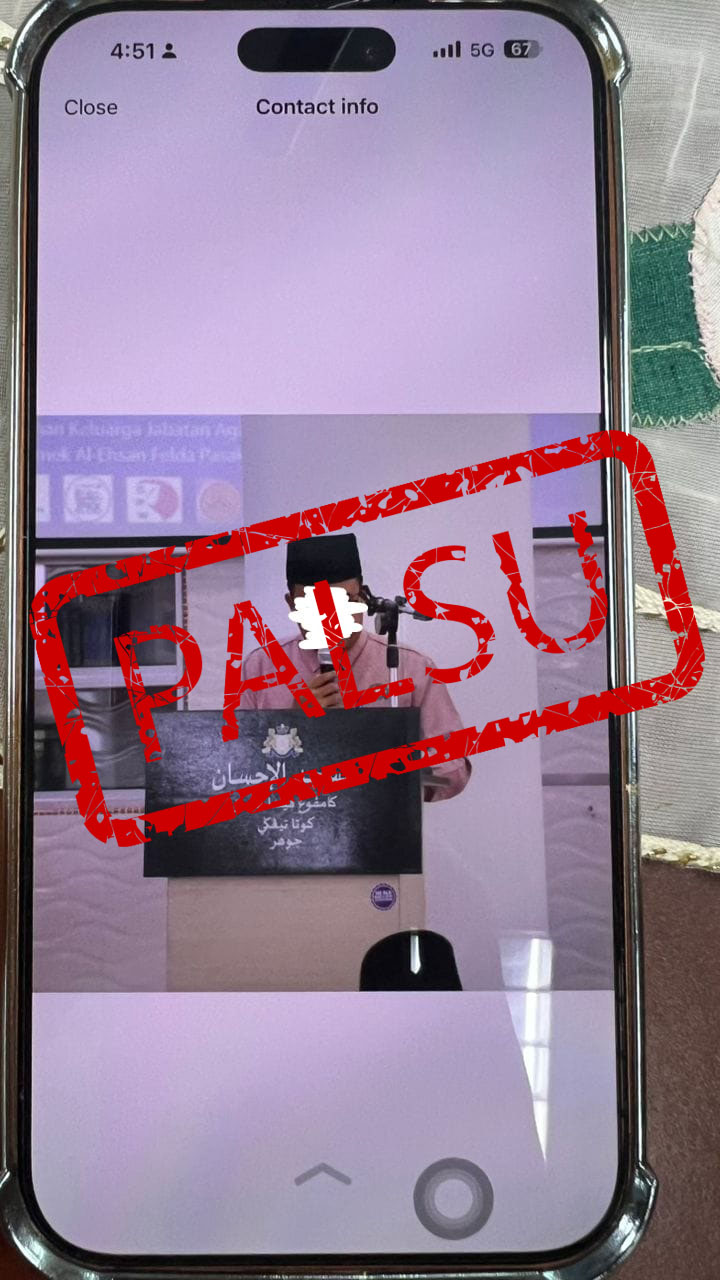 Jabatan Agama Islam Negeri Johor (JAINJ) ingin memaklumkan bahawa pihak kami telah mengesan satu cubaan penipuan melibatkan individu yang menggunakan nama “Ahmad Zaki Bin Abd Jalil” serta gambar seorang kakitangan JAINJ tanpa kebenaran.
